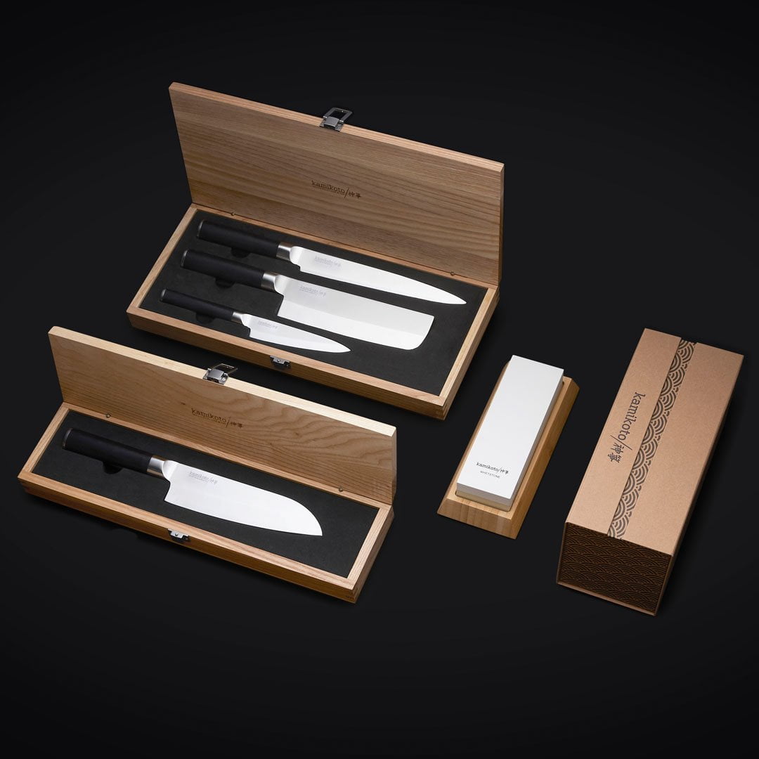 About Kanpeki Knife Set, 7-Inch Santoku & 1000/3000 Toishi Whetstone